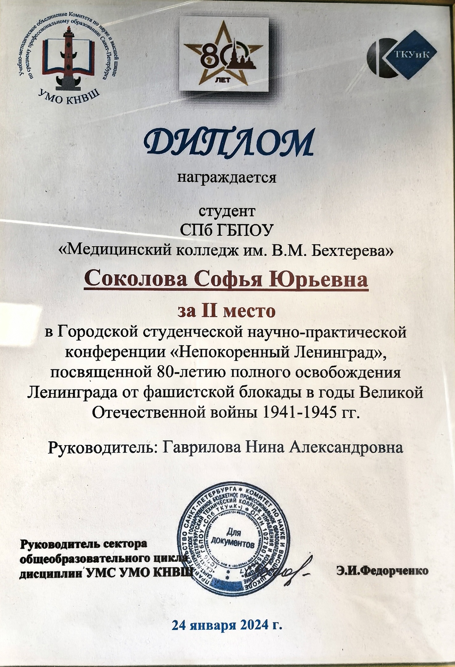 Поздравляем студентку 14 группы Быстрову Екатерину, занявшую II место в городской олимпиаде по химии среди ССУЗов Санкт- Петербурга
