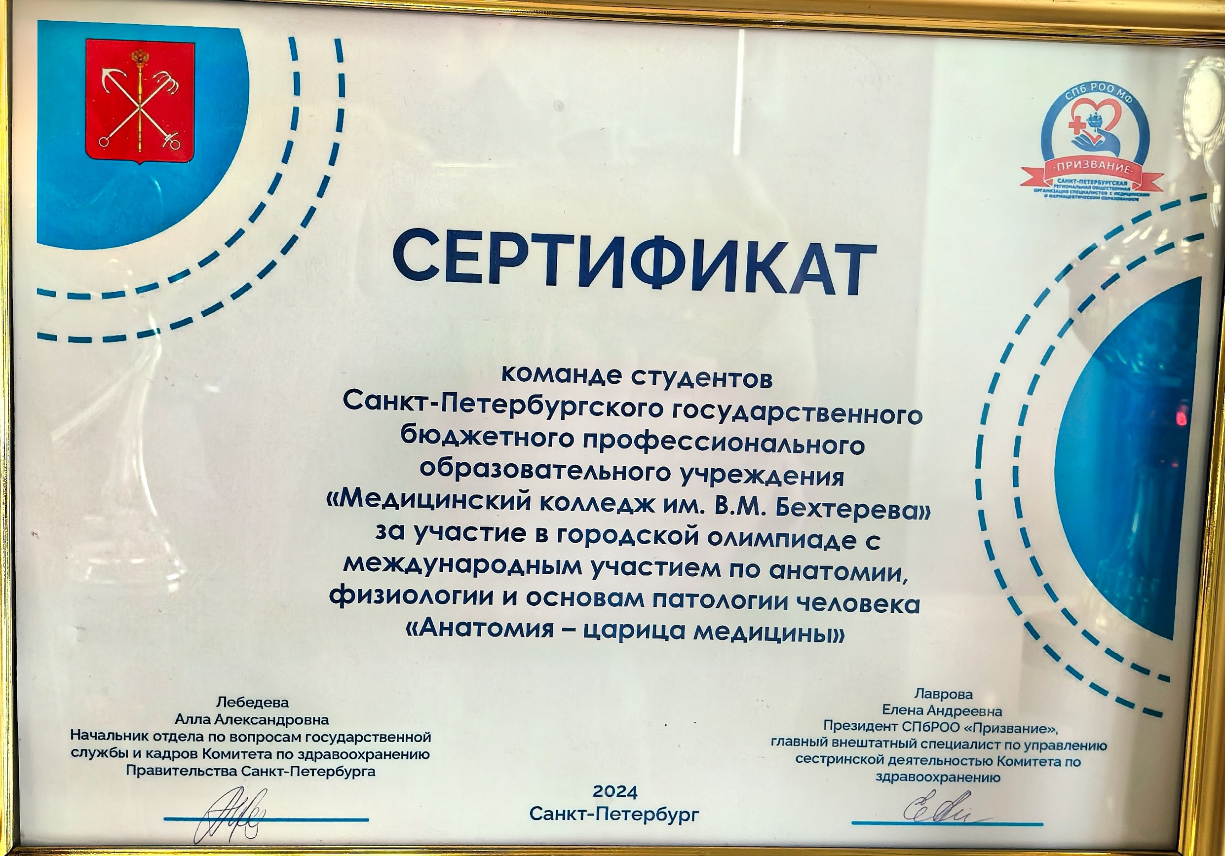03 сентября 2019 года Комитет по здравоохранению Правительства Санкт-Петербурга наградил Коллектив нашего колледжа Почетной грамотой за высокий профессионализм в подготовке медицинских кадров по результатам мониторинга качества подготовки кадров